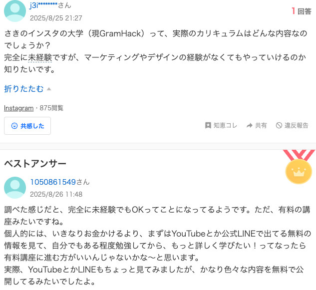 4. Yahoo!知恵袋の口コミ例③:未経験でも可能か(無料情報→有料検討の流れ)