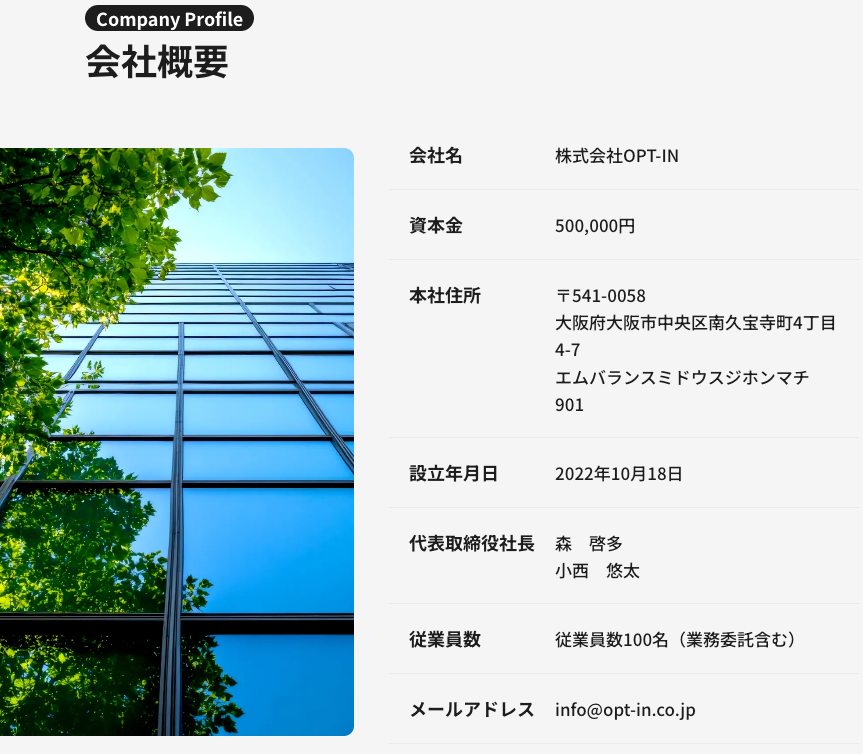 運営情報は申込み前の確認事項として整理されます。株式会社OPT-INの公式サイトには、GramHackの掲載が確認できます。また会社概要ページには、会社名・所在地・代表者・問い合わせ先などの基本情報が掲載されています。