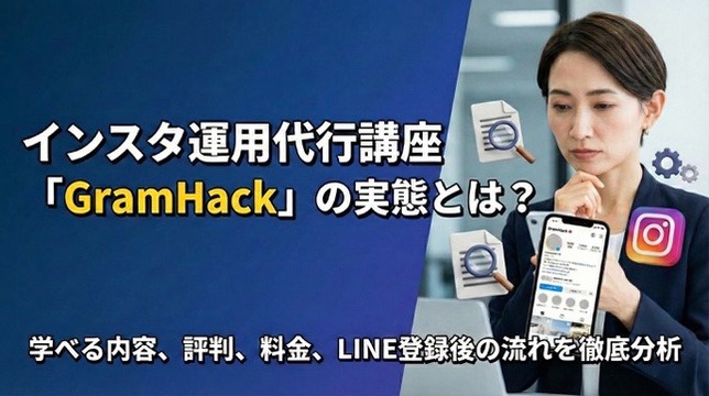GramHack(グラムハック)は、「さき インスタの大学」が展開するInstagram運用代行向けの講座として紹介されています。リールフィード投稿の作り方を軸に、制作を仕事として進める考え方や、申し込み前に確認したい運営情報も整理できます。本記事では、学べる内容、運用代行の基本、案件獲得の考え方、LINE登録後の流れ、口コミの見方、さきの公式SNS導線をまとめます。
